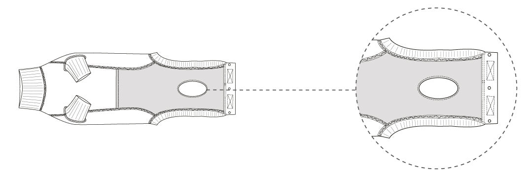 - Attach the closing flap on the touch fasteners on the loin and secure the press studs