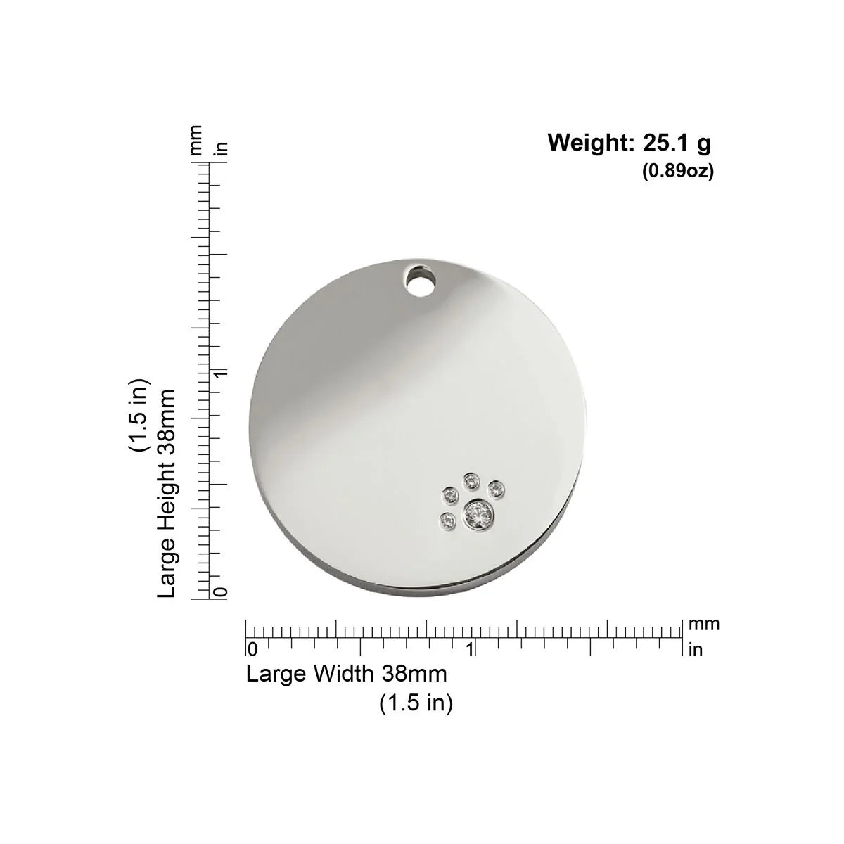 Our diamante polished stainless steel tags are set with Swarovski® Zirconia.